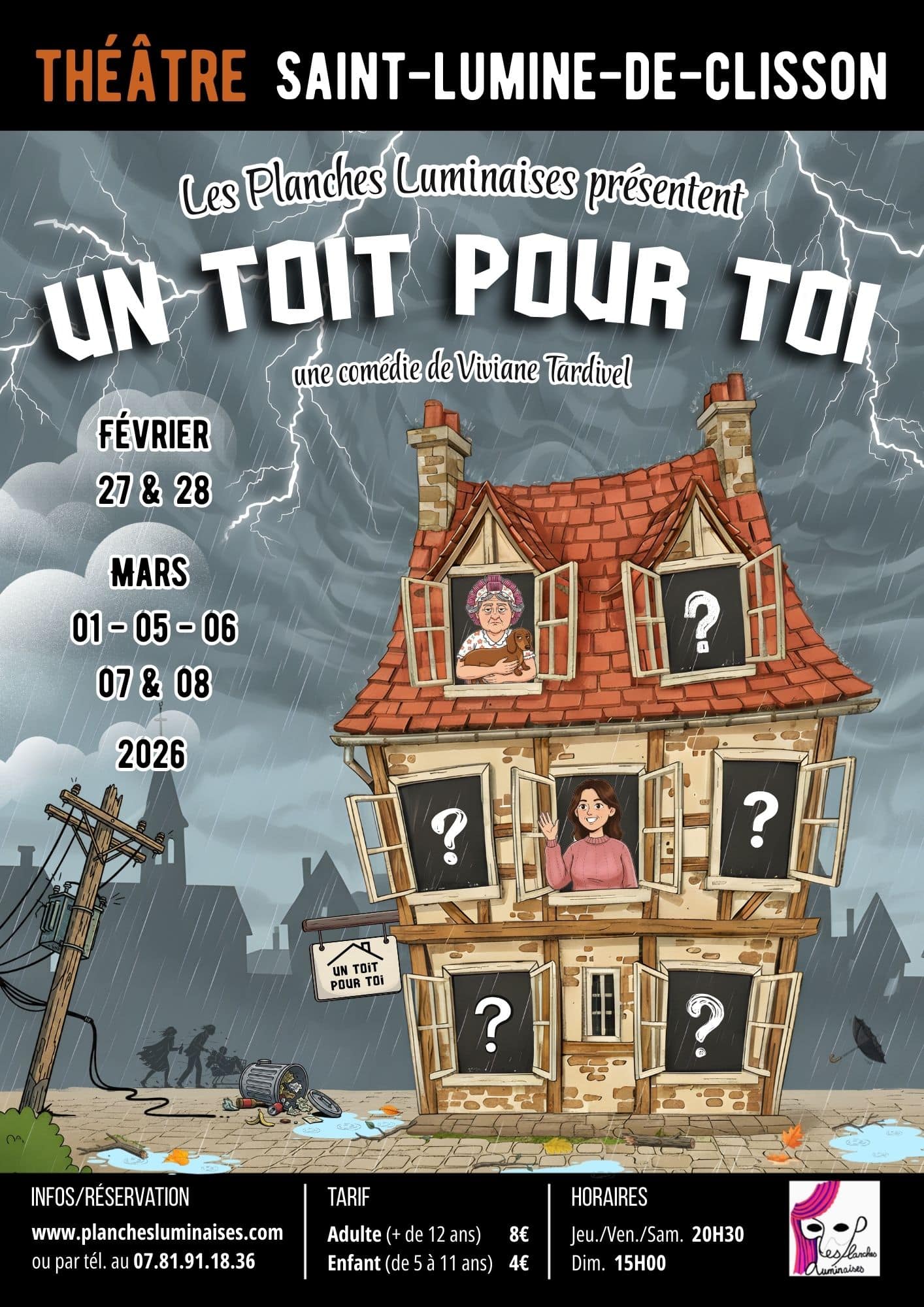 La troupe des Planches Luminaises est heureuse de vous présenter la pièce qui vous sera jouée en mars prochain, « Un toit pour toi », une comédie de Viviane Tardivel.